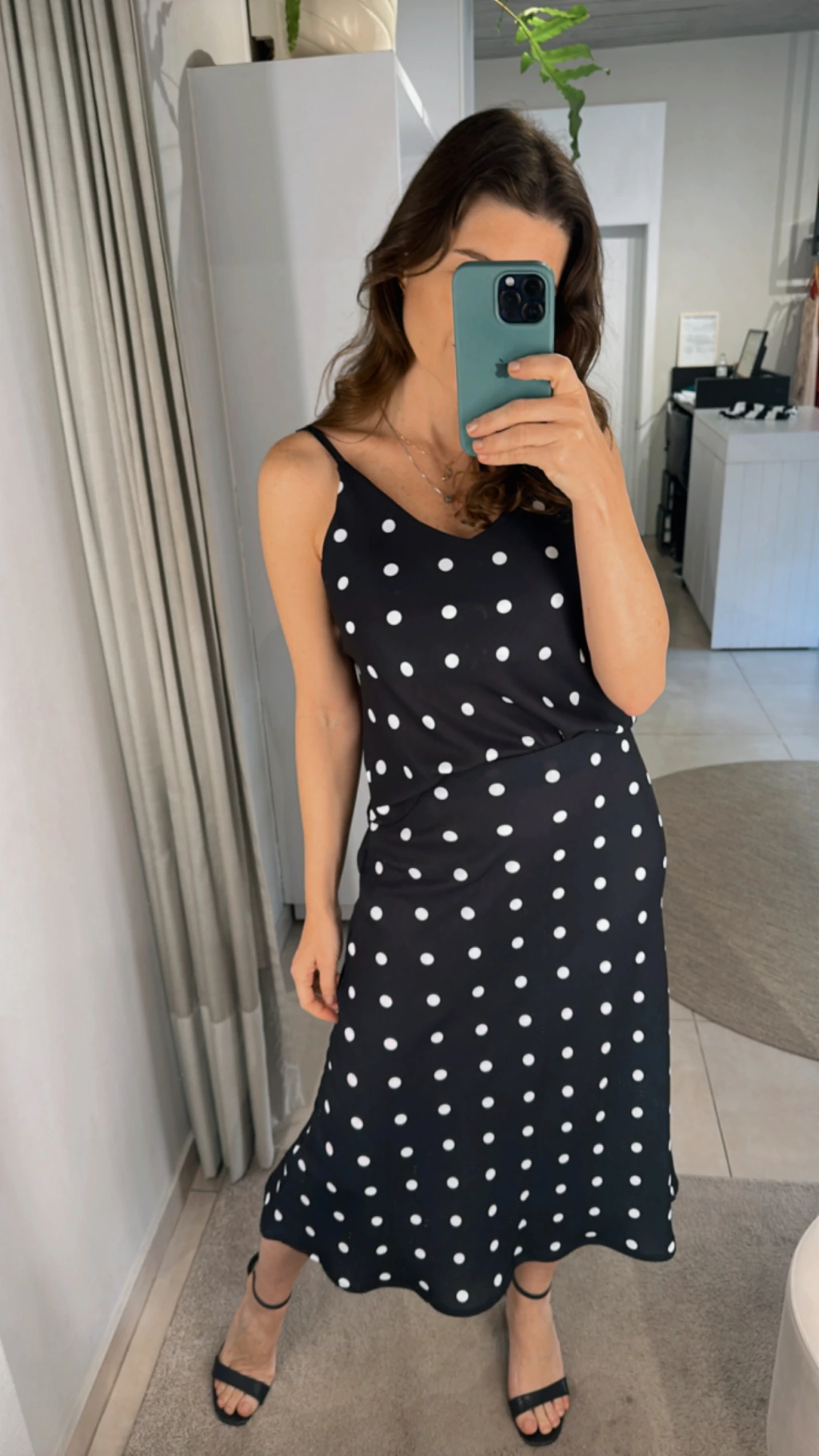 A saia midi poá é uma peça clássica e atemporal, perfeita para qualquer ocasião. A estampa de poá é sofisticada, moderna e nunca sai de moda. Combine com peças de cores neutras, com texturas diferentes ou crie um look monocromático descomplicado.