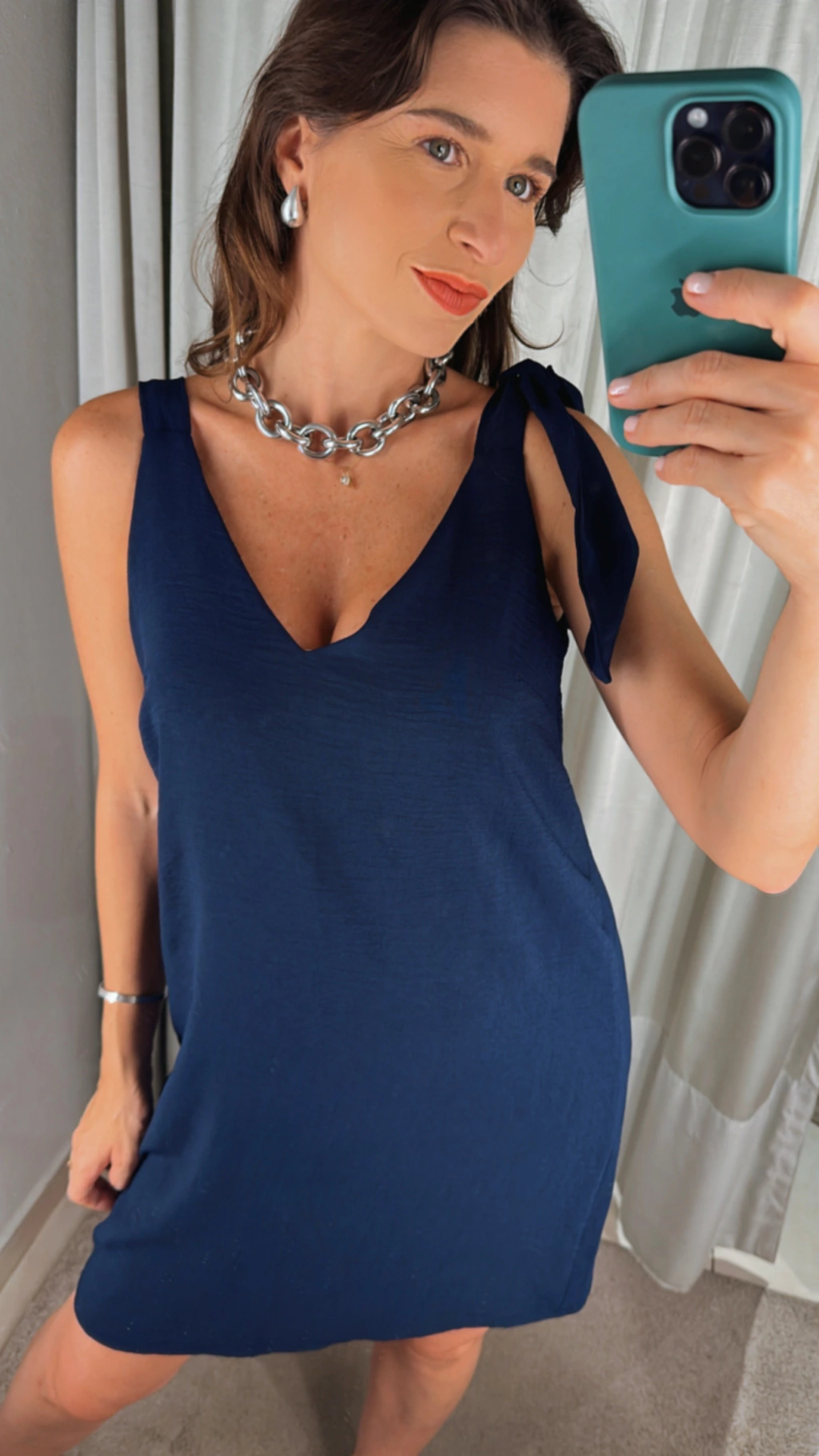 O Vestido Rebeca é a peça perfeita para os dias de calor! Com modelagem solta e um comprimento que fica na medida certa, ele une frescor e sofisticação. Seu design no estilo regatão, com alças mais largas, permite o uso com sutiã sem preocupações. O detalhe especial fica por conta do laço removível em uma das alças, uma fita delicada que cai suavemente, trazendo um charme extra.