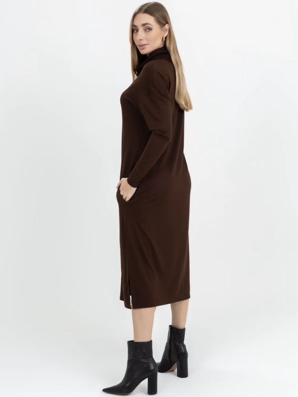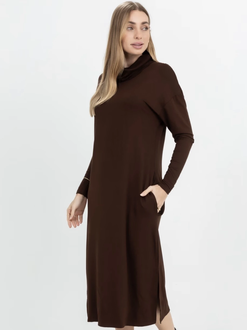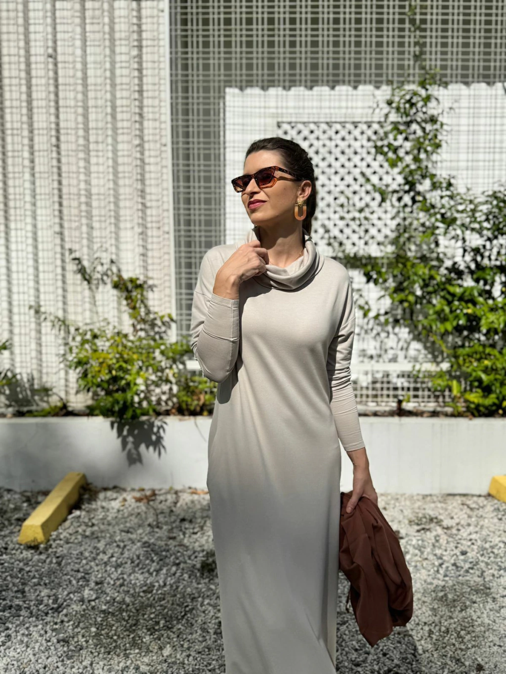 Esse vestido une o toque macio do tecido ao charme da gola maxi estruturada, criando um visual elegante e atual. A modelagem ampla e o caimento soltinho valorizam diferentes silhuetas, enquanto os bolsos laterais garantem praticidade — porque beleza e funcionalidade caminham juntas.
